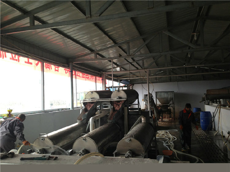 現小編以我們汝陽古城機械廠的設備配置來講解下機械大致配套,比如有簡易型設備和流水線自動化設備,我們首先說下簡易型的紅薯淀粉機械,設備主要完成前半部分,包括清洗、破碎、分離、除沙、凈化等,后續的沉淀、脫水、烘干等環節都是由人力通過沉淀,二次過濾,吊坨,晾曬完成,需要人工操作。整套設備下來投資少,見效快,但是用人較多,勞動強度大,這種簡易型設備投資方面并不高,對于初學者來說也是嘗試性投資。而一套實用的淀粉設備與簡易型生產線最明顯的區別在于配置有脫水、烘干設備,省去了人工起粉晾曬等工序,解放人力,自動化程度得到明顯提高,當然價格也比簡易型的淀粉生產線要高。